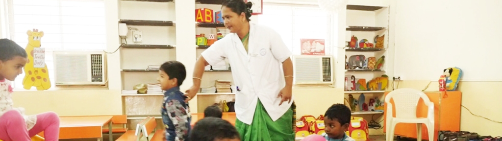 The Kindergarten playroom is full of interactive, fun play equipment that helps develop the psycho-motor and creative skills of the young children. The room has colourful wall-to-wall murals that the kids enjoy immensely.